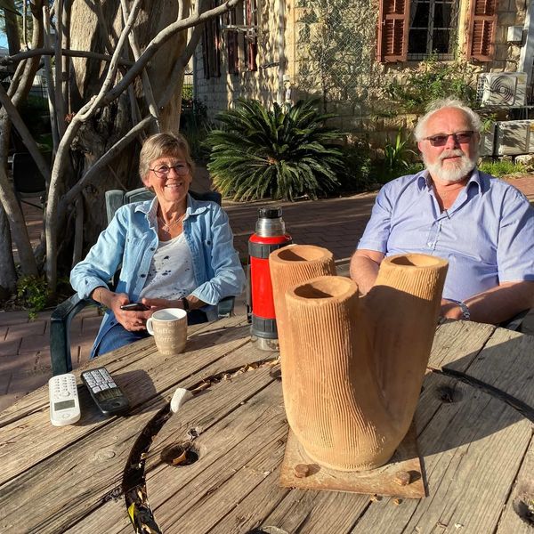 Ingfrid og Oddvar venter nå spent på når det åpnes opp for ruteflygninger for å kunne reise hjem, men luftrommet i hele Midtøsten er foreløpig stengt ned. I mellomtiden nyter de sol, varme og hyggelige bekjentskaper ute i hagen og på takterrasse. To av gjestene som nå er på Beiten har vært Husfolk på Beit Norwegia i Jerusalem og ville ha noen dager ved kysten.